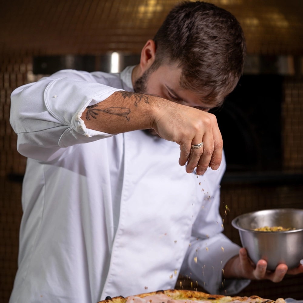 Desde entonces, su manera de trabajar se apoya en el cuidado de cada elaboración y en la idea de que una pizza puede transmitir mucho más que sabor. Para él, cada creación es también una experiencia, un equilibrio entre técnica, sensibilidad y respeto por una tradición que sigue viva en cada detalle.