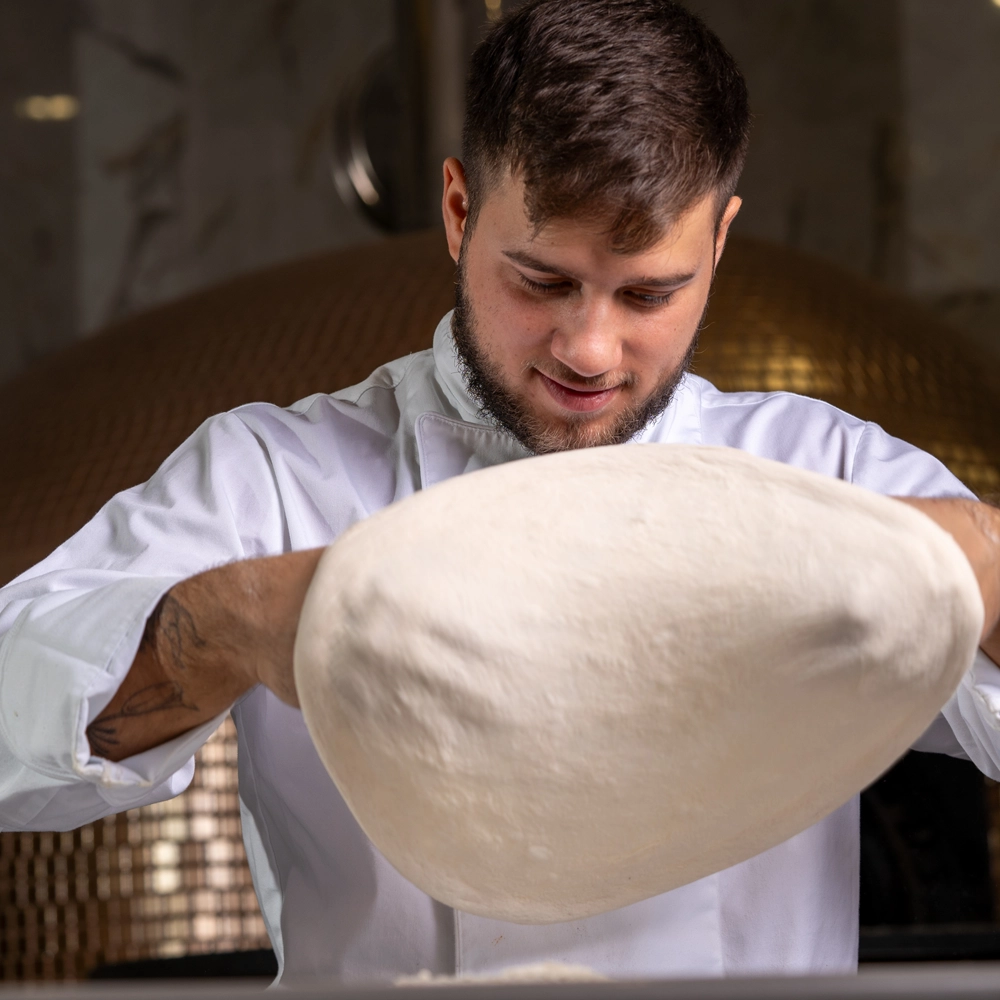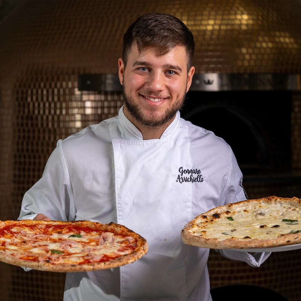 Detrás de cada pizza de Gennaro Arrichiello hay pasión, vocación y una forma muy personal de entender este oficio. Aunque durante años su vida estuvo ligada al deporte, fue en la cocina donde encontró el camino que realmente quería seguir. El trabajo con la masa, el horno y los sabores despertó en él una conexión auténtica con el mundo de la pizza, una filosofía que hoy también se refleja en cada propuesta de nuestra carta.